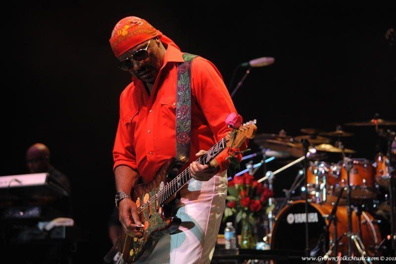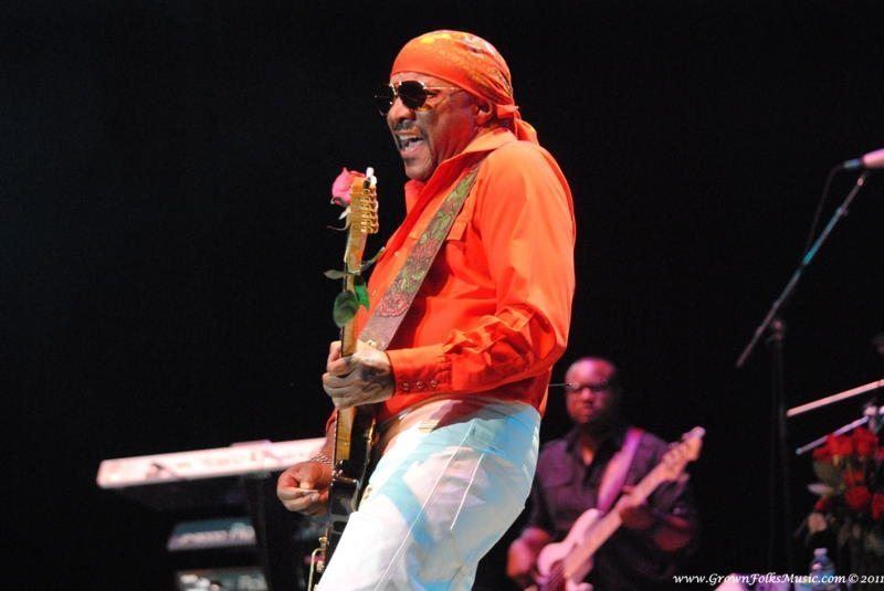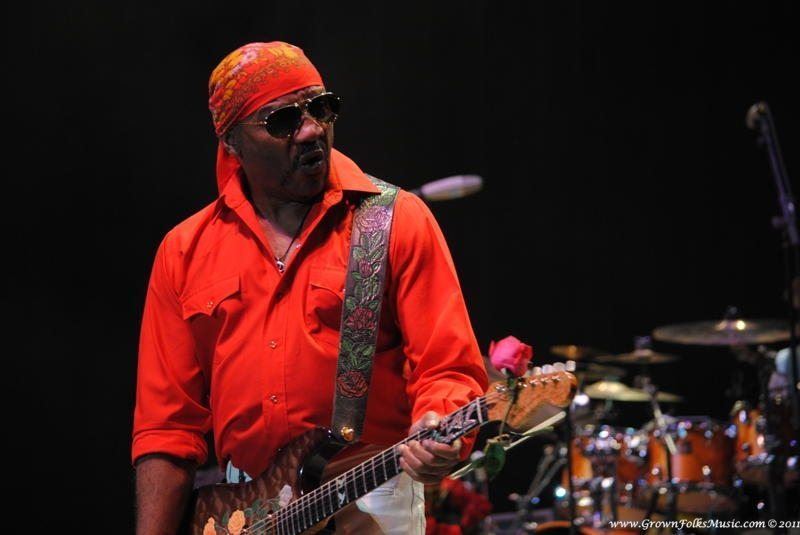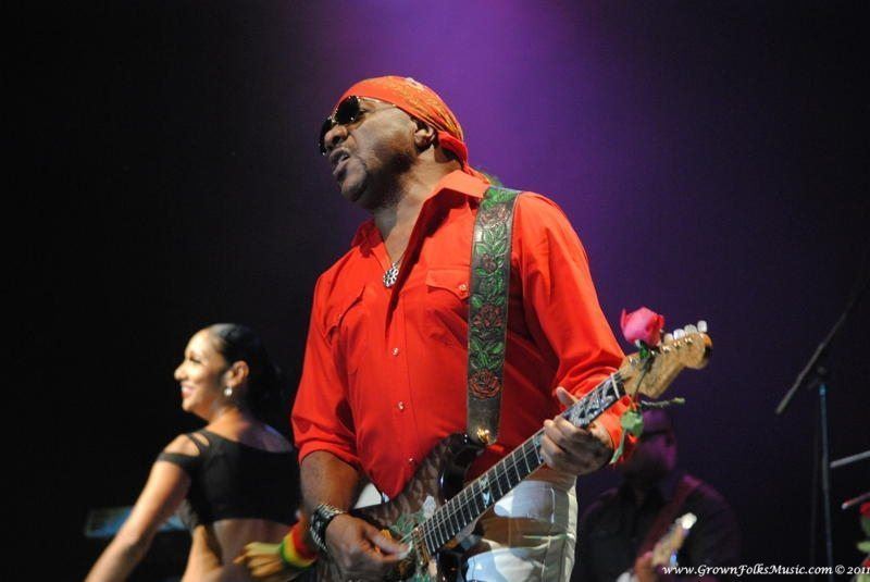 The final act was the iconic Isley Brothers. The Isley Brothers have been performing for over 50 years, and it is evident that Ernie Isley is ready for 50 more. Ernie commands and owns the guitar with an ease that speaks of true mastery of his art. The set opened energetically with Mr. Ron Isley walking on stage to remind us of the Isley’s original politically power tunes, beginning with “Fight the Power”. At 70, Ron Isley is still hitting the high notes in his iconic falsetto. The Isley Brothers are truly one of those groups that have so many hits that it would take hours to cover each hit in full. Nonetheless, the brothers Isley visited many of their greatest hits, including “Footsteps in the Dark”, “At Your Best (You Are Love), and “Voyage to Atlantis”. The audience was even treated to a visit from “Mr. Biggs” when a medley of tunes from the “Down Low” Remix to “Contagious” were revisited. A pleasant surprise came when the Isley Brothers covered Jonathan Butler’s monster hit, “Falling in Love with Jesus”. The evening closed with “For the Love of You”. As the crowd begin to leave the amphitheatre , a soulful accented voice suddenly permeated the concert speakers- it was advertised emcee Idris Elba belatedly arriving to the show. It was a great night, and it was obvious from all of the couples embracing throughout the night that a great time was had by all.